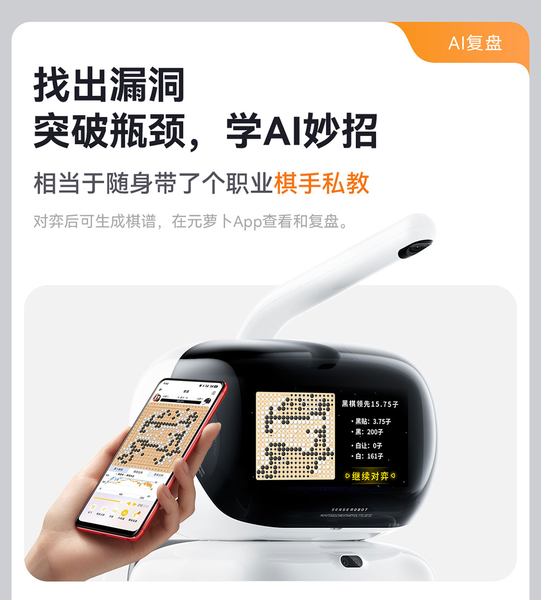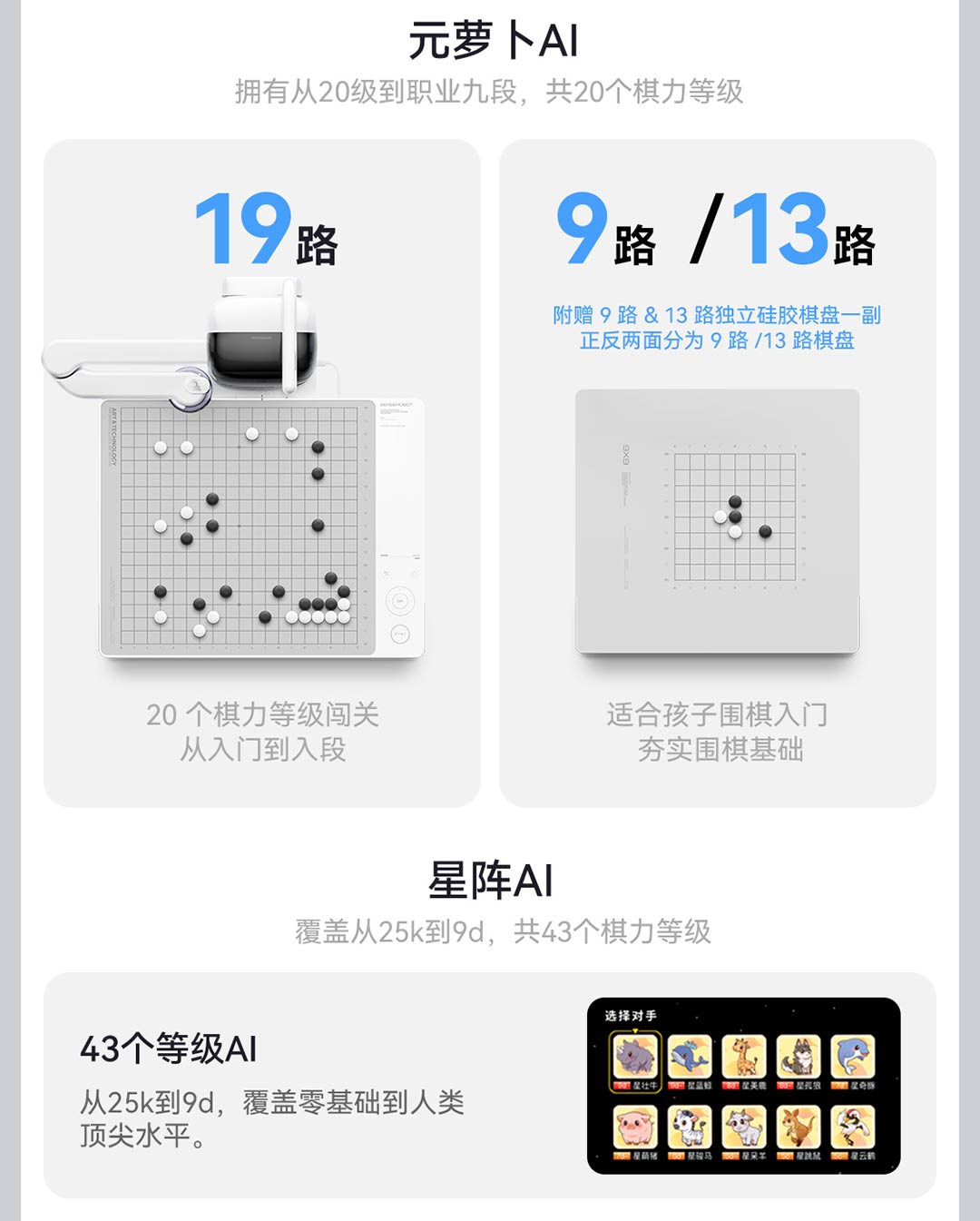 元萝卜 AI下棋机器人 围棋机器人 陪练 涨棋 健康用眼 专业版 太空白