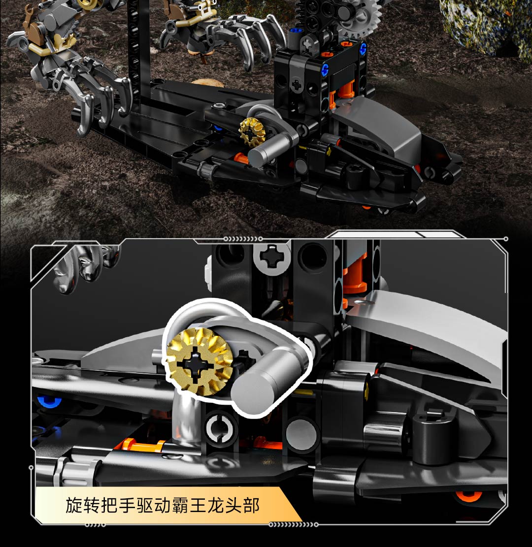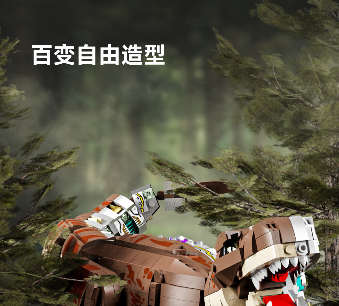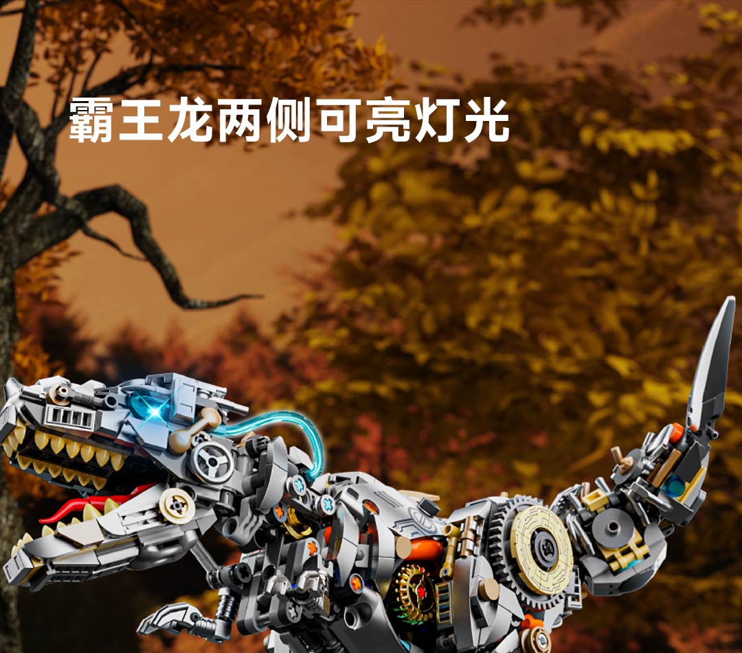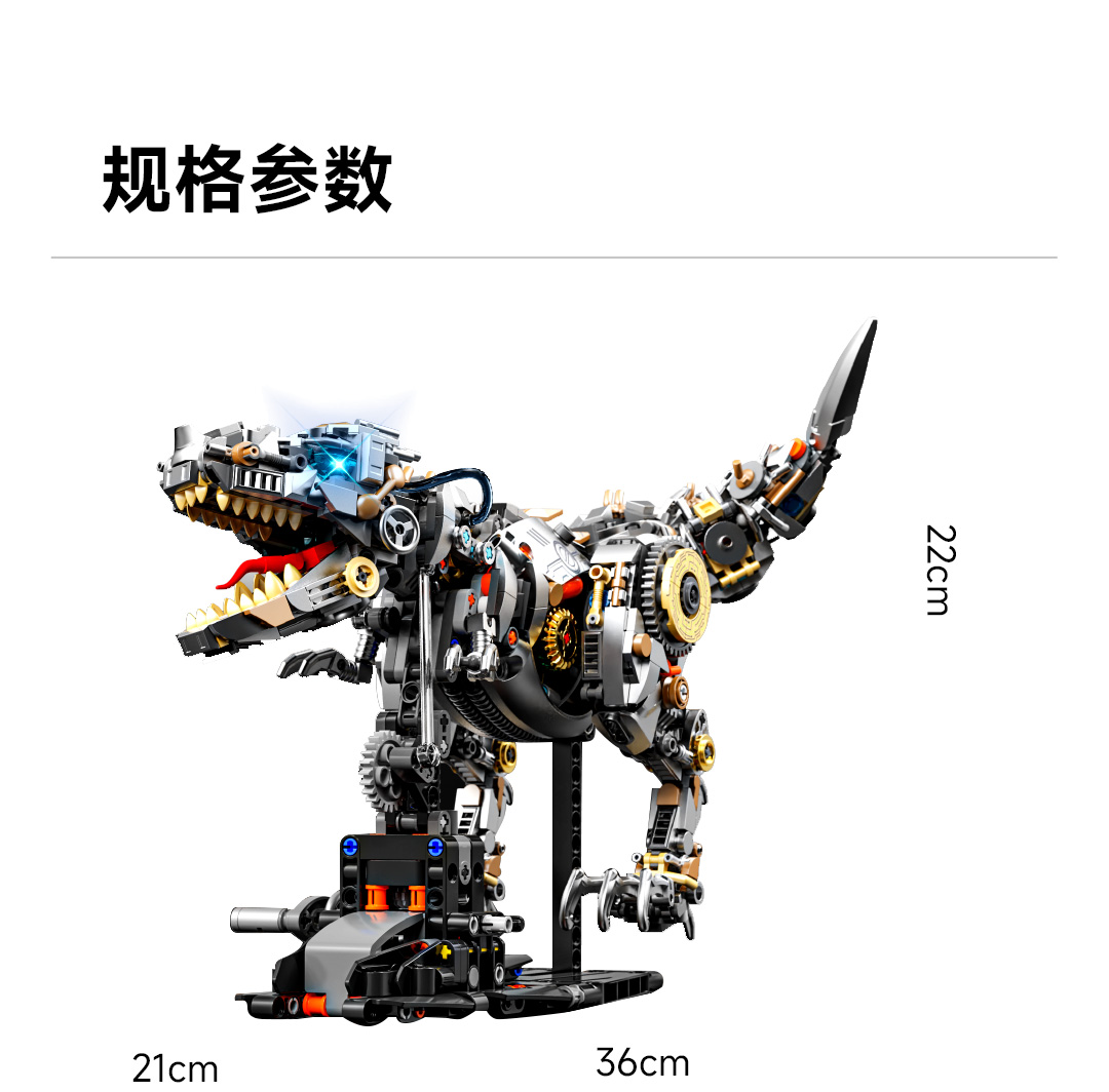 机械恐龙拼装积木模型 霸王龙-1268颗粒【关节可动+发光装置】