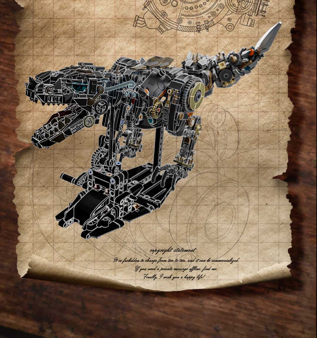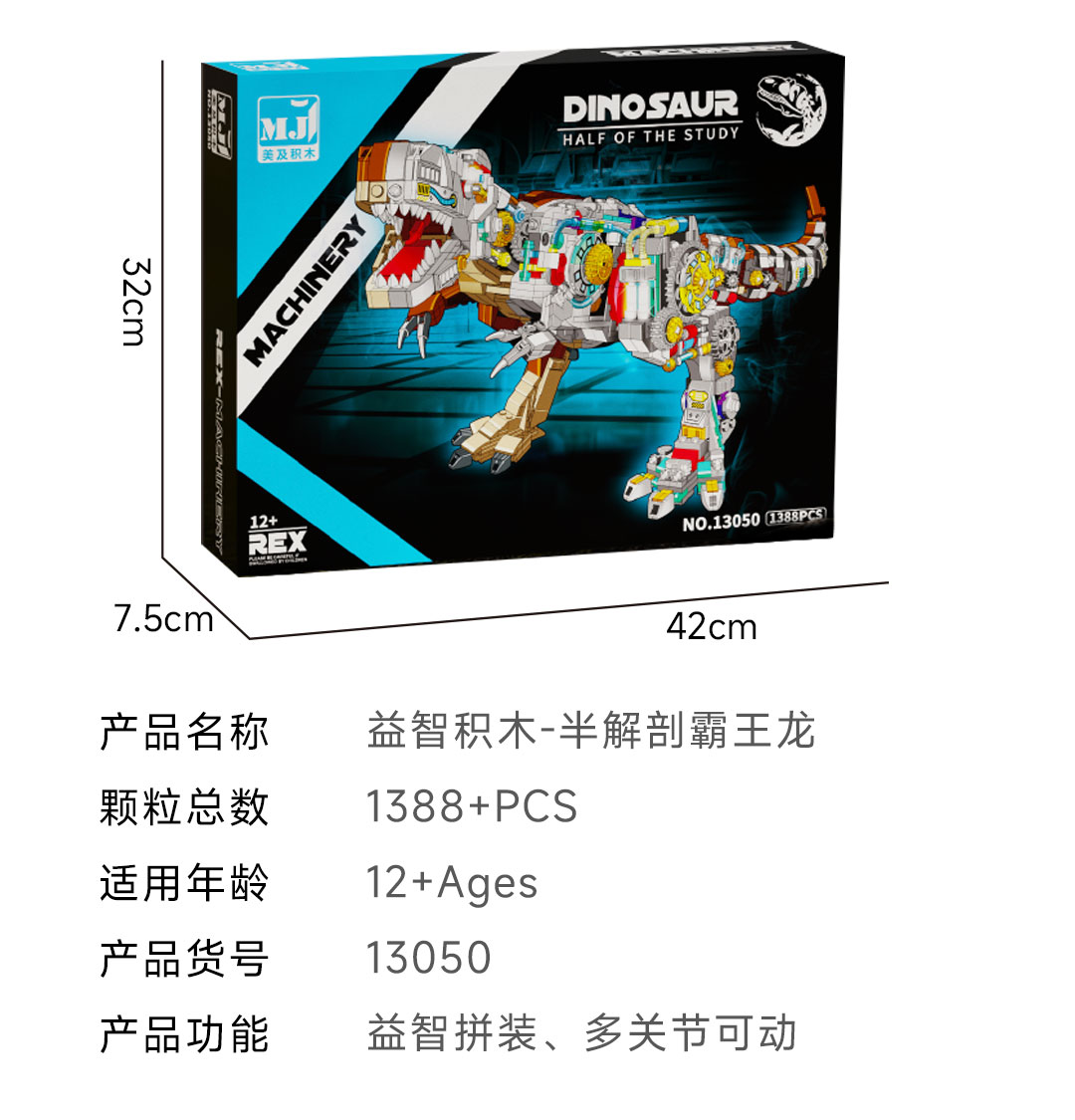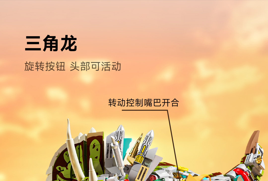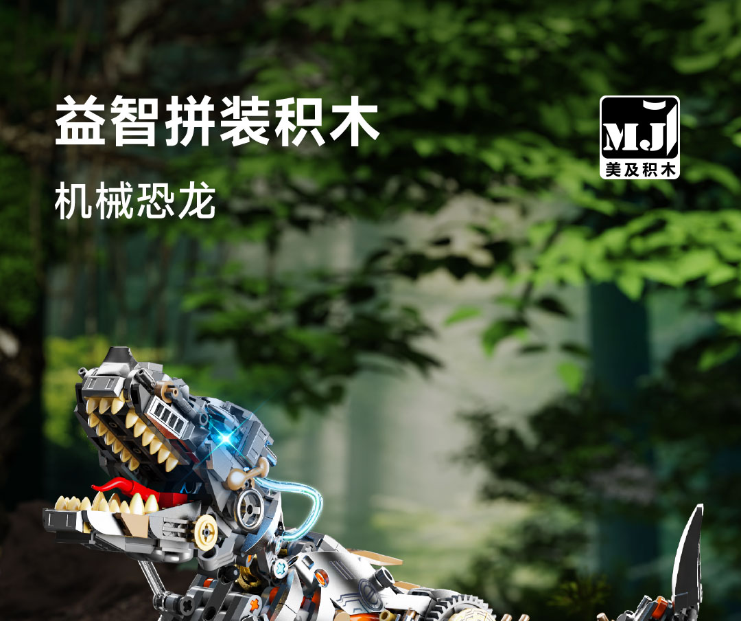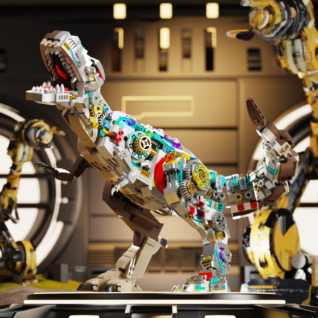 机械恐龙拼装积木模型 霸王龙-1268颗粒【关节可动+发光装置】