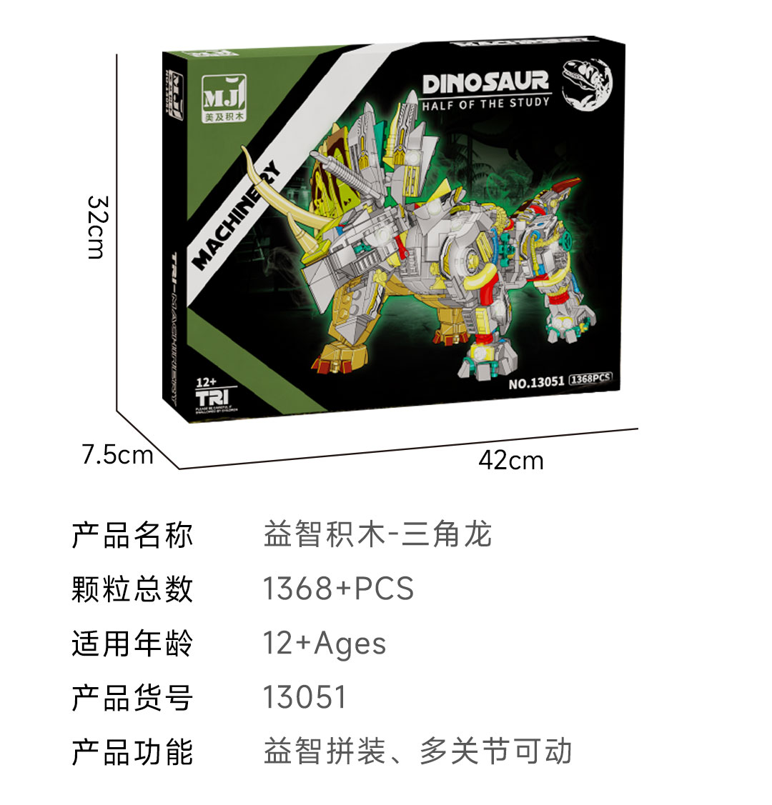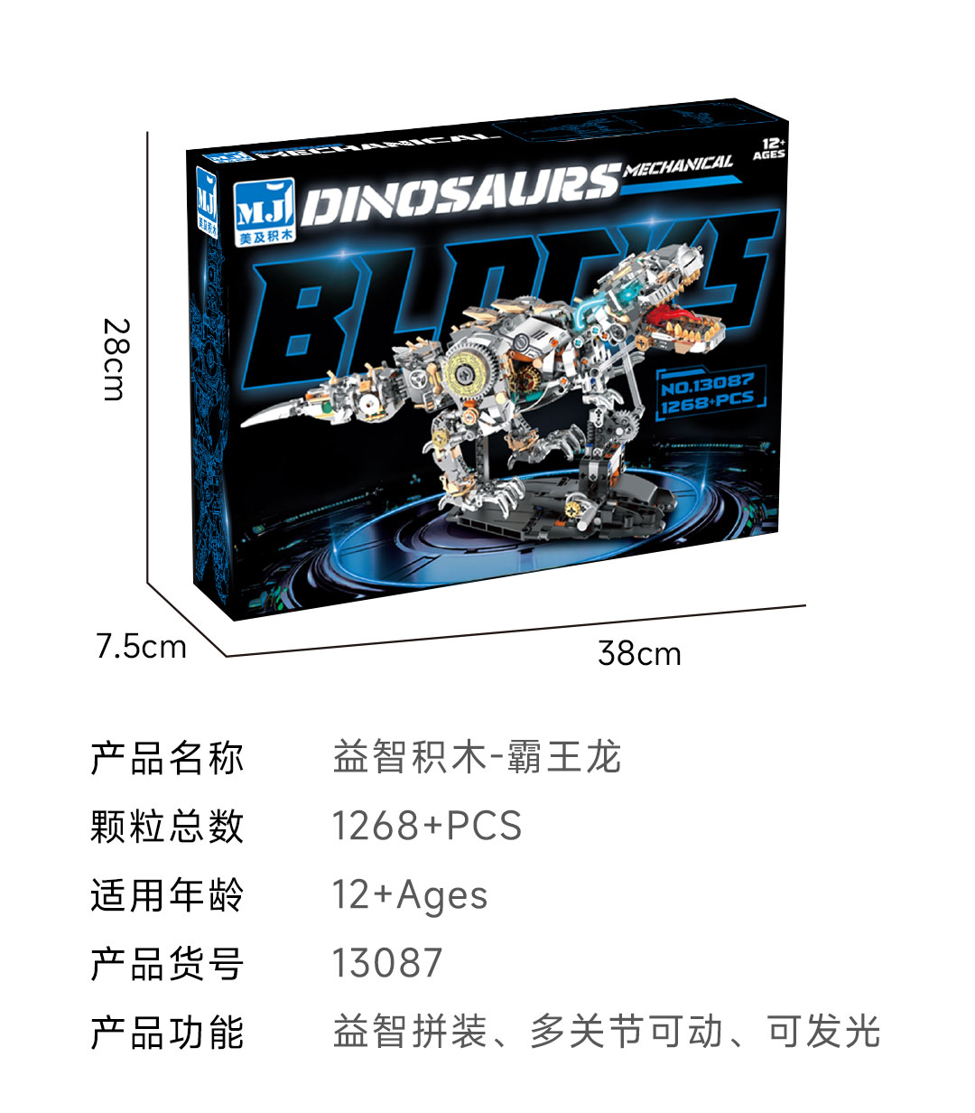 规格:霸王龙-1268颗粒【关节可动+发光装置】