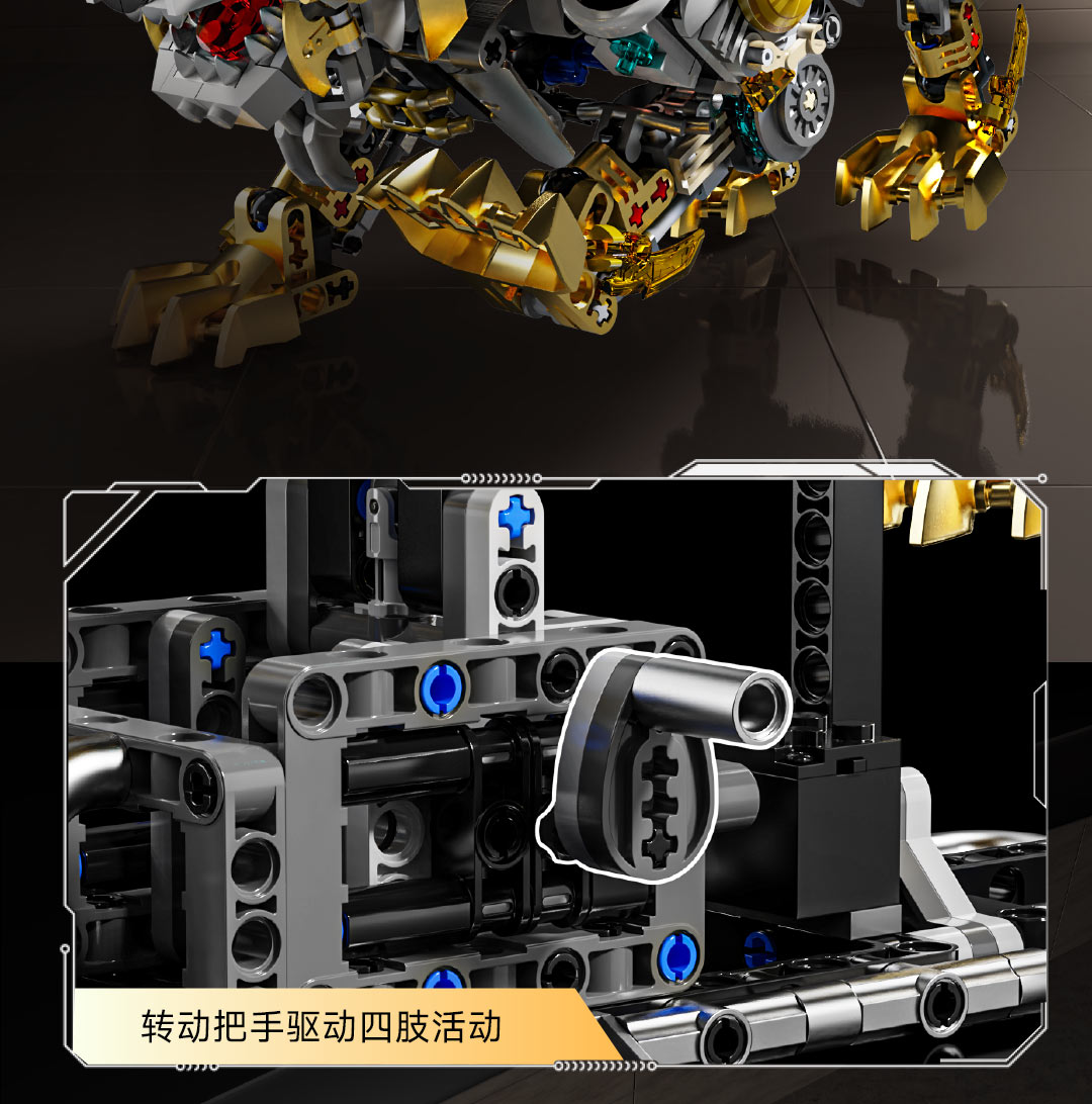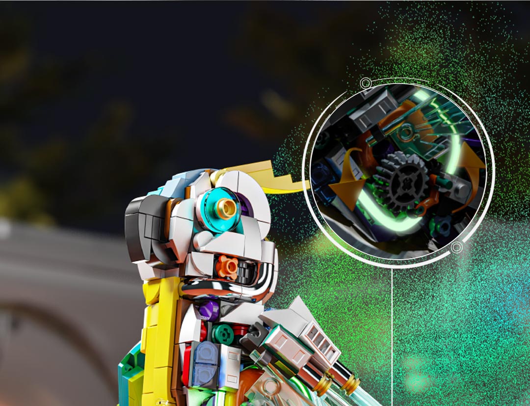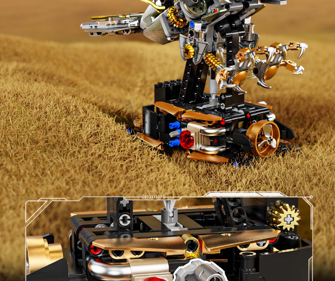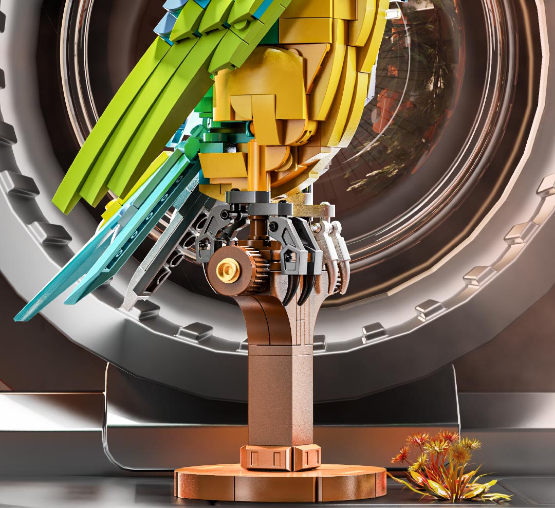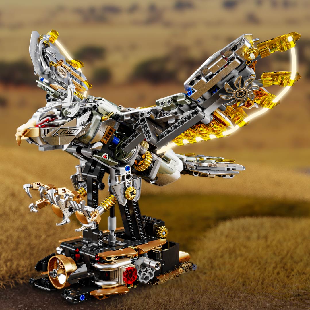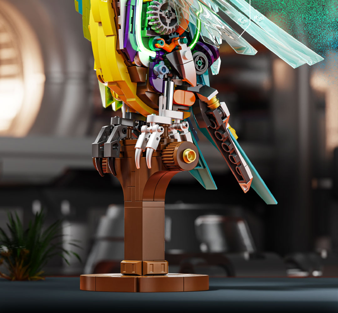 机械仿生动物拼装积木模型 半机械鹦鹉-688颗粒【关节可动+发光装置】 手摇版