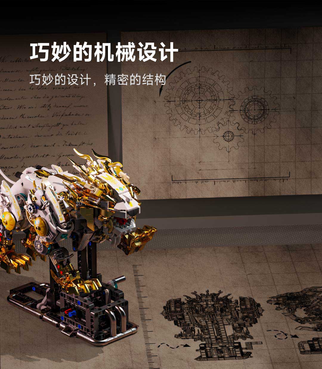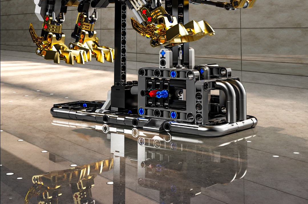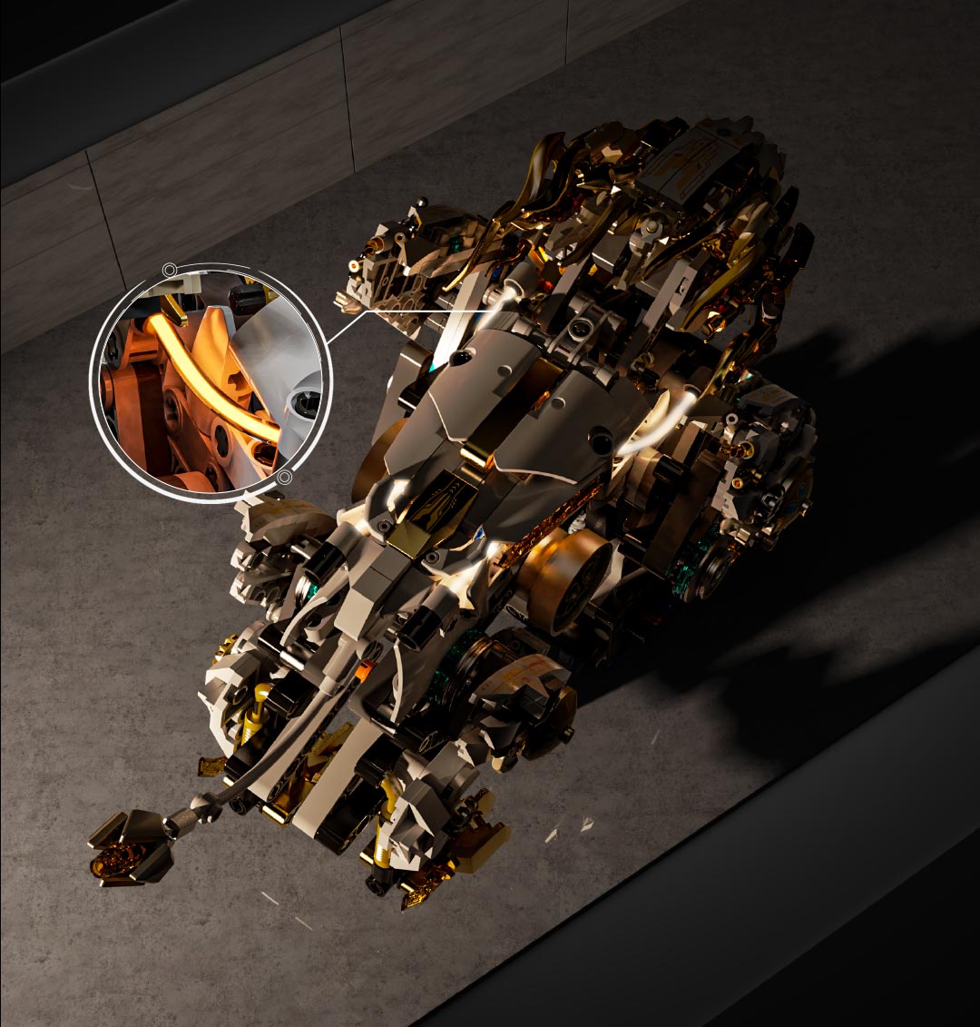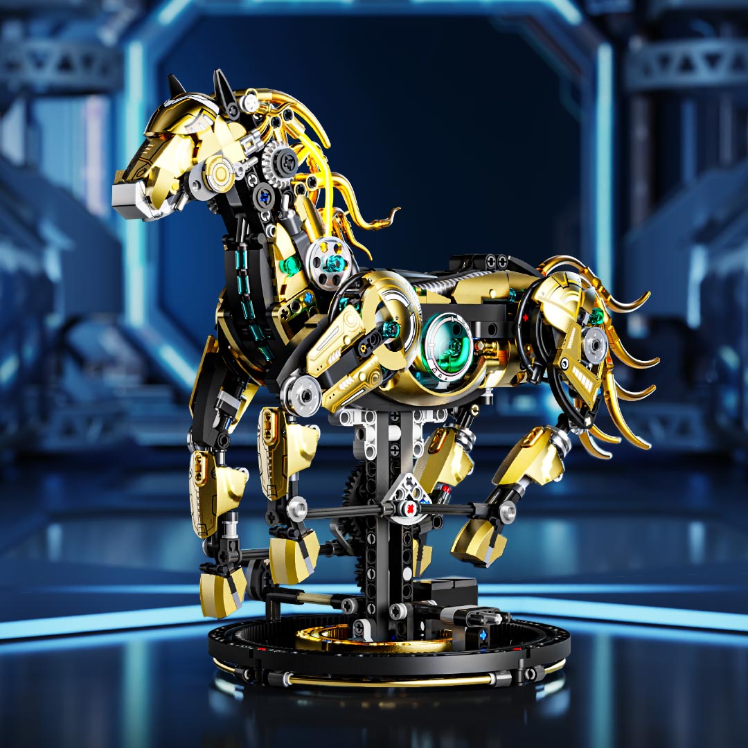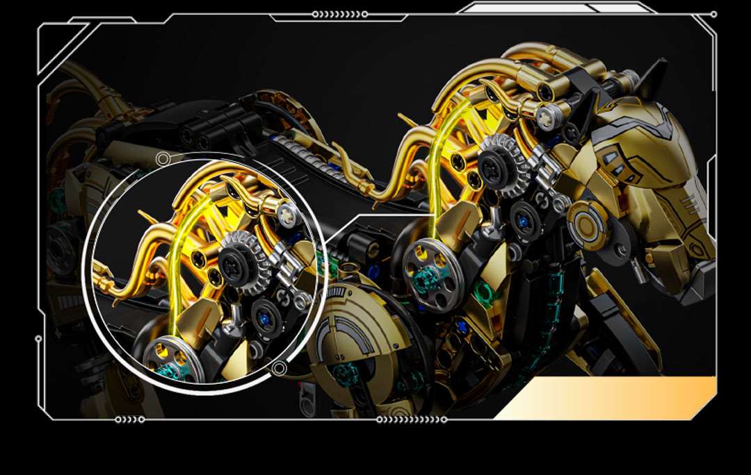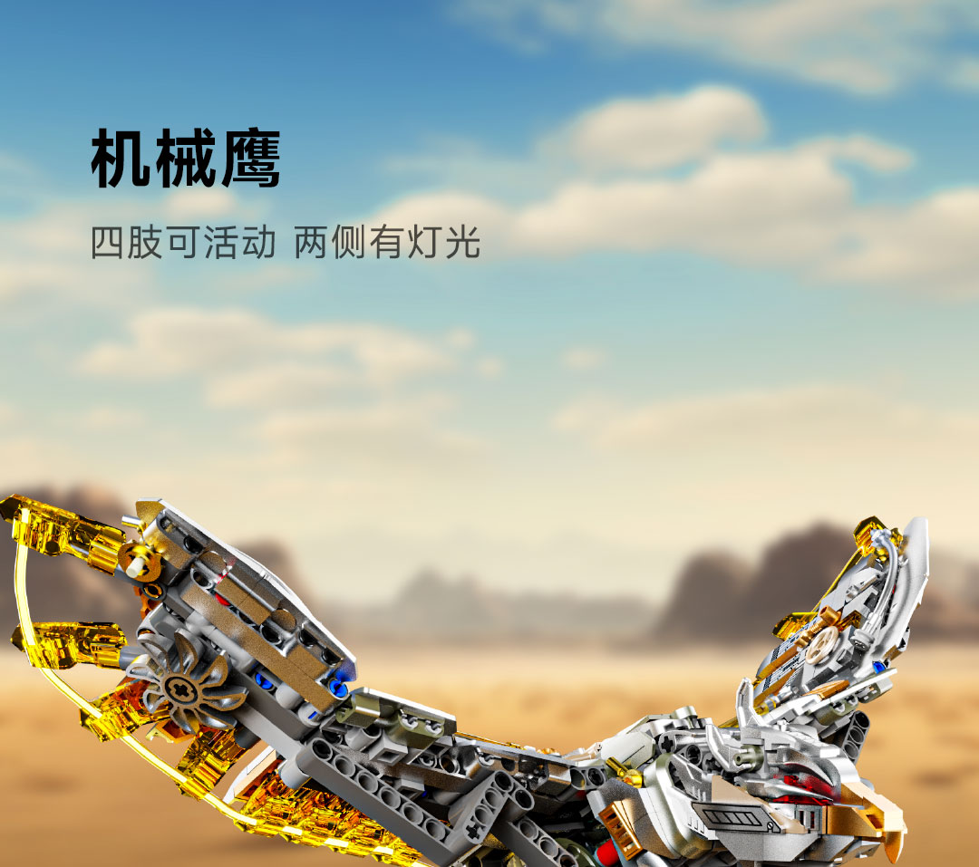 机械仿生动物拼装积木模型 半机械鹦鹉-688颗粒【关节可动+发光装置】 手摇版