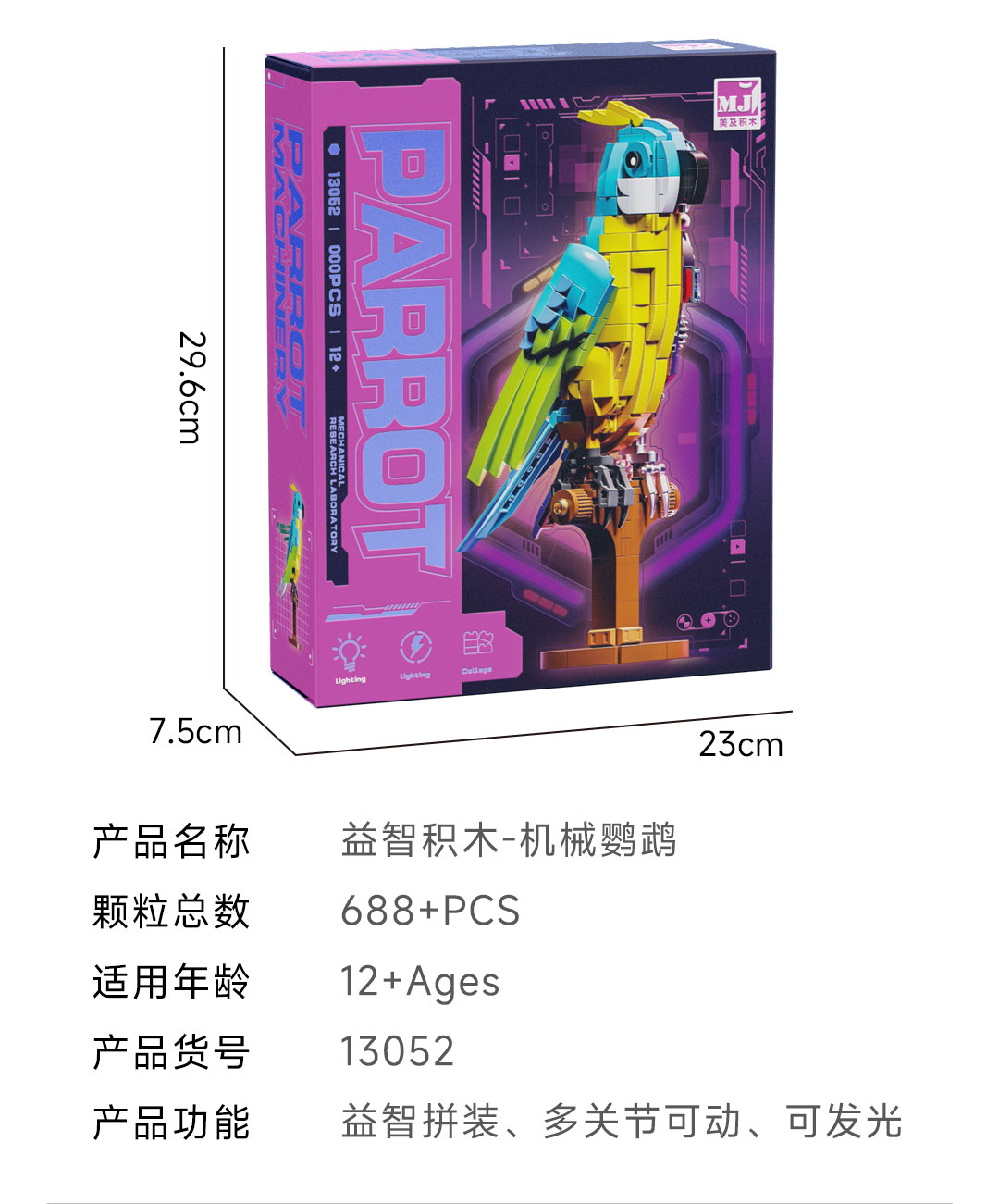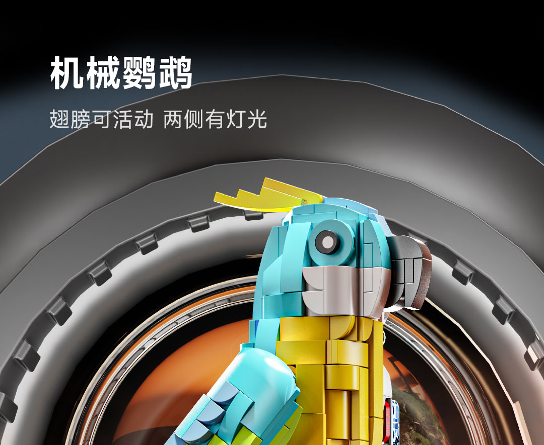规格:半机械鹦鹉-688颗粒【关节可动+发光装置】