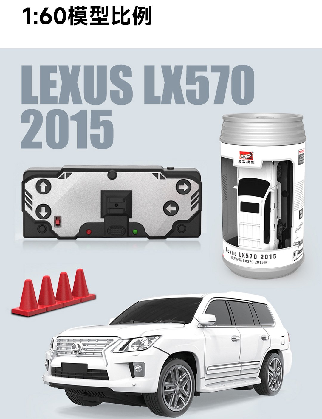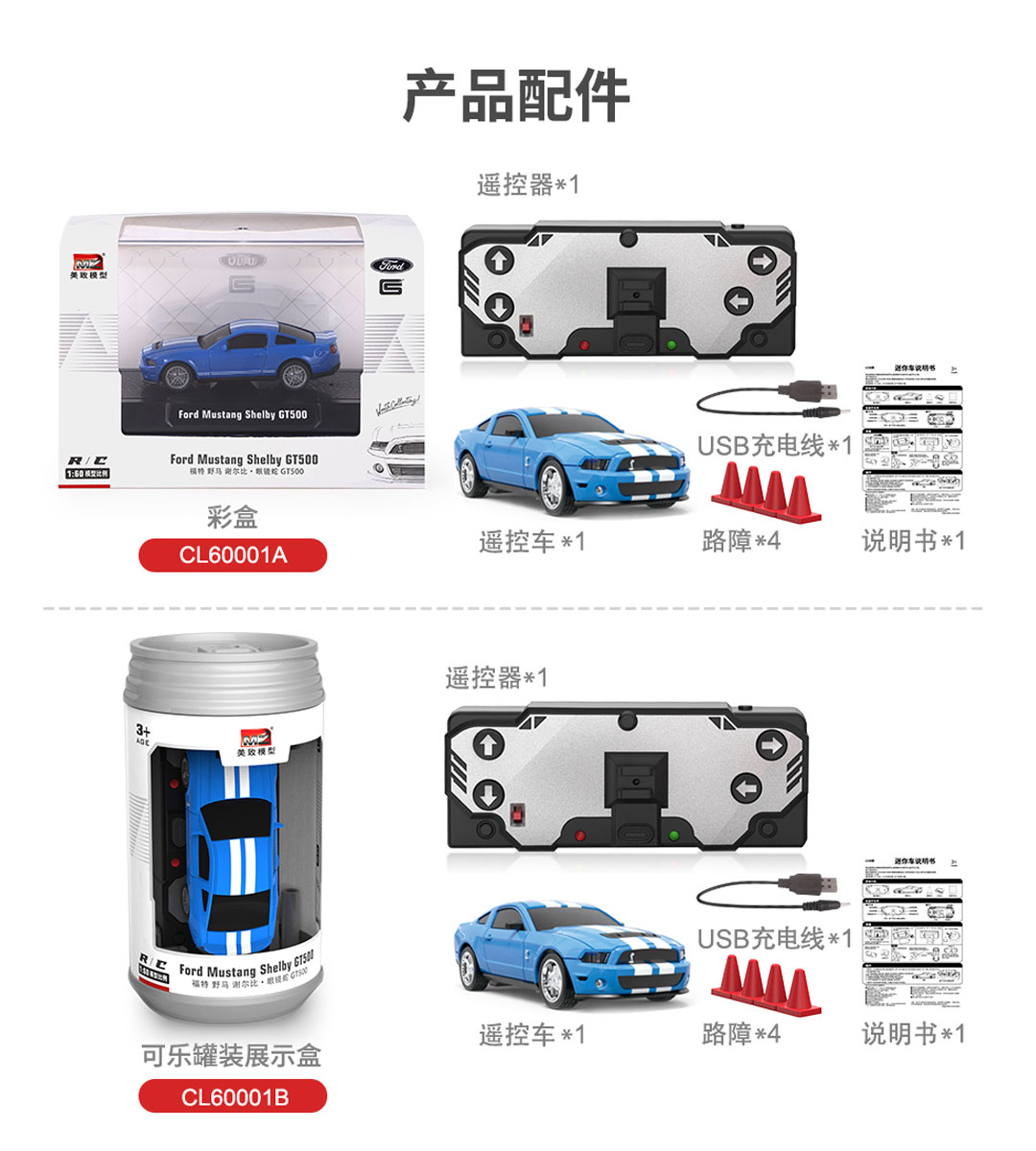 规格:正版授权美致迷你遥控车1:60福特野马-红色