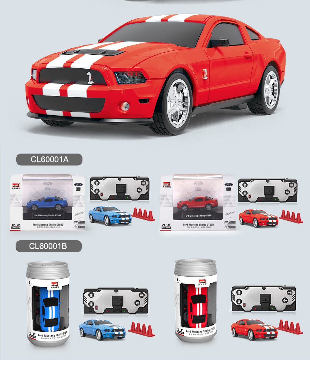 顺丰包邮美致迷你遥控车1:60福特野马-红色